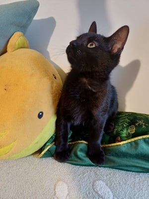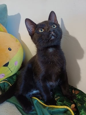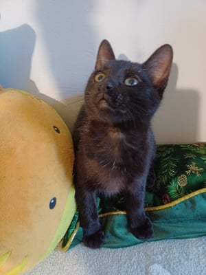 He is a bright, playful little kitten, brimming with joie de vivre. Jerry loves to romp with his siblings, explore new things, and enjoy plenty of cuddles. His curiosity and cheerfulness make him simply irresistible.