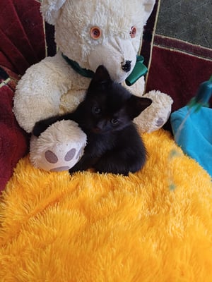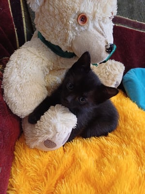 Jerry, one of Tinkas four kittens, along with Leo, Blacky und Simba, was born in a foster home after his pregnant mother was rescued from the cemetery.