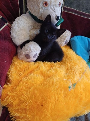Jerry, einer von Tinkas vier Katzenkindern, neben Leo, Blacky und Simba, kam auf einer Pflegestelle zur Welt, nachdem seine Mutter trächtig vom Friedhof gerettet wurde.