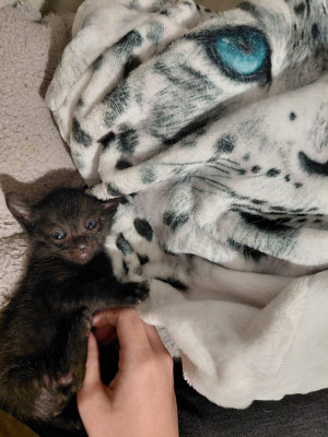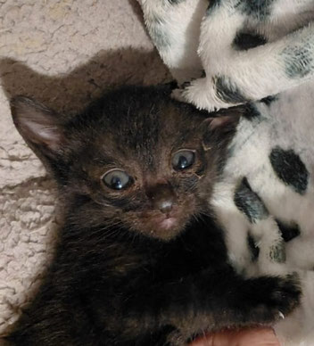 In early September 2025, the tiny kitten Faith was found on a construction site near us – carelessly discarded in a dump truck. She was only about two weeks old, far too young to survive on her own.