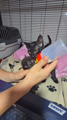 Anfang September 2025 wurde das winzige Kätzchen Faith auf einer Baustelle in unserer Nähe gefunden – achtlos in einem Muldenkipper entsorgt. Sie war gerade einmal etwa zwei Wochen alt, viel zu jung, um allein zu überleben.