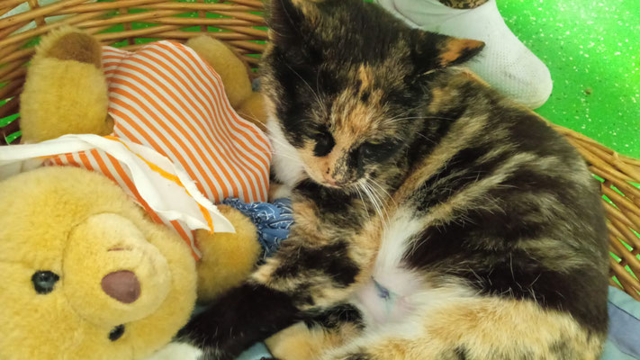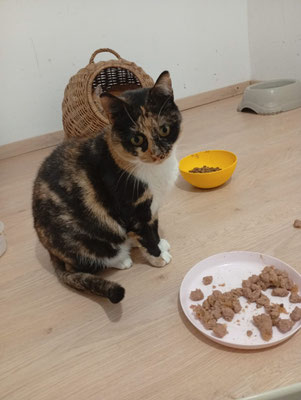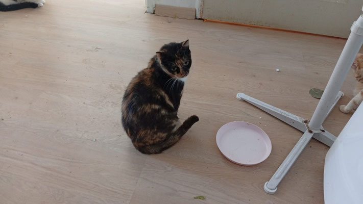 Flora wurde gemeinsam mit Kicza im Müllbereich eines Restaurants entdeckt – tragend, hungrig und ohne Schutz. Doch trotz allem, was sie erlebt hat, ist Flora eine unglaublich liebe, süße Katze geblieben.
