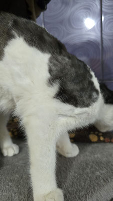 Regia wurde im August 2025 von Grigoreta neben Bahngleisen gefunden – ganz allein und in einem erbärmlichen Zustand. Ihr kleines Körperchen war voller Flöhe, und sie schien schon einiges durchgemacht zu haben.