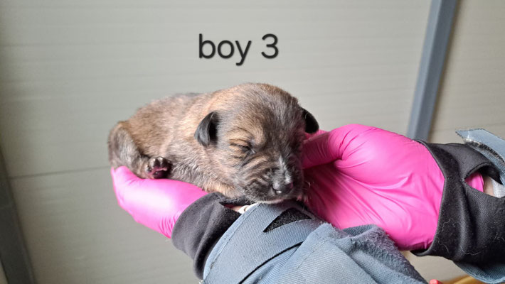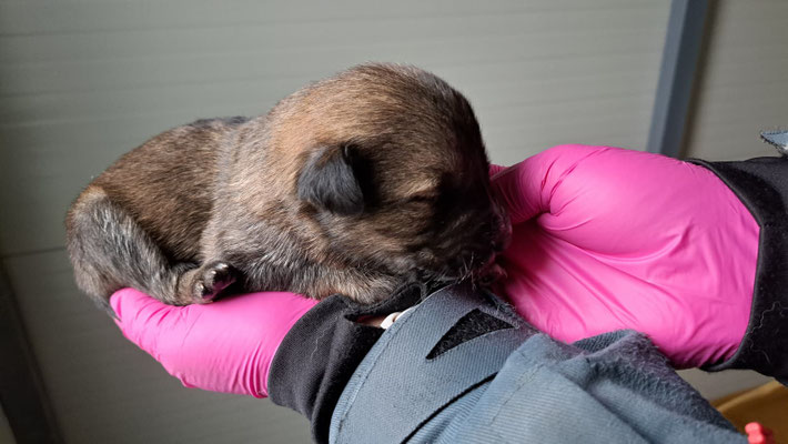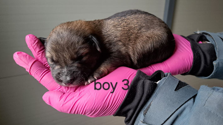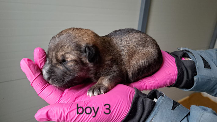 Heute ist er ein gesunder, zuckersüßer Welpenjunge. Er ist noch sehr jung, daher zeigt sein Charakter sich erst in den nächsten Wochen. Sobald er größer wird und seine kleine Persönlichkeit sichtbar wird, berichten wir natürlich mehr.