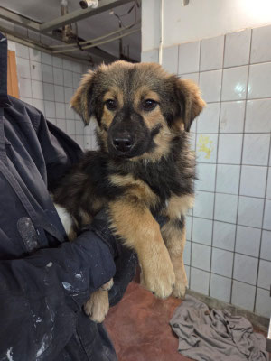Theo was found by a woman on Monday morning, December 1, 2025, near a storage area at a building materials depot. He was wandering alone, unprotected, with no one to look after him. The woman asked the property owners to take care of the young dog – but they refused. This would have inevitably left Theo on the street, unprotected, hungry, and in constant danger. So, the woman took him with her and brought him to us so he could at least have a chance at a safe life.
