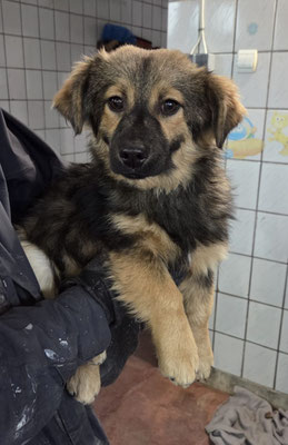 Theo wurde am Montagmorgen, dem 01. Dezember 2025, von einer Frau in der Nähe einer Ablagefläche eines Baustofflagers gefunden. Er war allein unterwegs, ohne Schutz, ohne jemanden, der nach ihm schaute. Die Frau bat die Besitzer des Geländes, sich um den jungen Rüden zu kümmern – doch sie wollten ihn nicht. Damit wäre Theo unweigerlich auf der Straße gelandet, schutzlos, hungrig und in ständiger Gefahr. Also nahm die Frau ihn kurzerhand mit und brachte ihn zu uns, damit er wenigstens eine Chance auf ein Leben in Sicherheit bekommt.